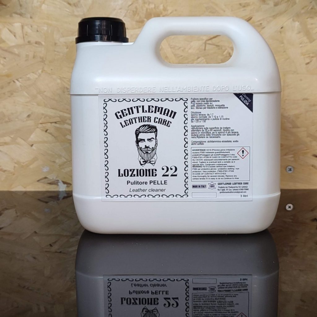 La Loción 22 se desarrolló como un limpiador específico para el cuero. Endurece el revestimiento de poliuretano de superficies como el tacto suave o la
